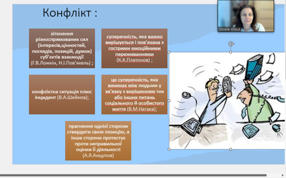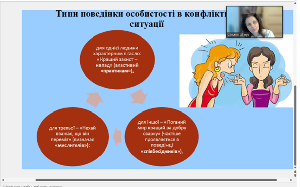 Учасники тренінгу дізналися більше про сутність поняття «конфлікт», види і причини конфліктів; особливості конфліктної поведінки людини; стратегії виходу з конфліктної ситуації; психологічні техніки захисту від вербальних нападів; техніки переконання.