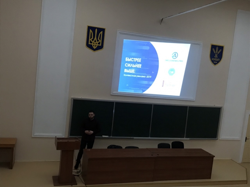 4 грудня 2018 року в Національному університеті біоресурсів і природокористування України у 233 аудиторії 10 навчального корпусу на 3 парі о 11.40 відбулася лекція студента магістратури спеціальності «Маркетинг» Олександра Омельяненка – преміального партнера Google Ukraine, на тему «Швидше. Вище. Сильніше. Контекстна реклама – 2019» для студентів 4 та 1 курсу за спеціальністю «Маркетинг». На лекції були присутні: заступник декана, к.е.н, доцент Новак О. В., т.в.о. завідувача кафедри маркетингу та міжнародної торгівлі, д.е.н, професор Буряк Р. І., к.е.н., доцент Ніколаєвська В. В., к.е.н., асистент Завальнюк К. С. та асистент кафедри Луцій К. М.