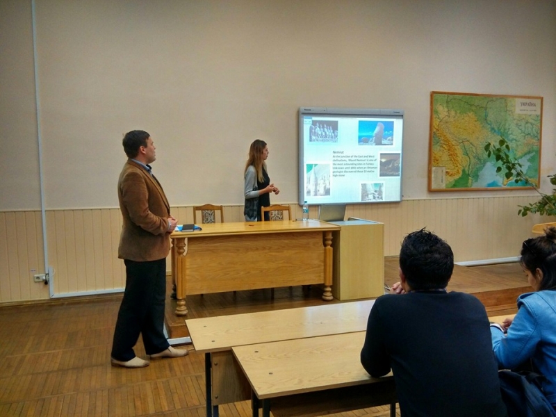 Як відомо, нещодавно факультет землевпорядкування відзначив своє 20-річчя. Програмою було передбачено ряд заходів протягом минулого тижня. Ще 21 вересня до України прибула численна делегація з Туреччини, у складі провідних вчених і аспірантів університету Дічле (DİCLE UNIVERSITY, м. Діярбакир, Туреччина). Assoc. Prof. Neshe Uzen, молодий науковець, представила студентам 4 курсу та викладачам свої лекції про знайомство з культурою Туреччини та особовості меліоративних заходів у їхній країні. Після чого гостей запросили до знайомства з підрозділами НУБіП України, де по черзі проводили екскурсію доц. Богданець В.А., доц. Кравченко Ю.С. та доц. Тертишний А.П., з якими вони вже мали знайомство під час візиту у Туреччину за програмою академічних обмінів. На жаль, декан сільськогосподарського факультету Університету Дічле Проф. Др. Онер Четин не зміг взяти особисту участь у заході, як планувалося раніше, тому Проректор з навчальної і виховної роботи проф. С.М. Кваша передав Подяку за налагодження міжнародної співпраці між навчальними закладами його представниці Neshe Uzen.