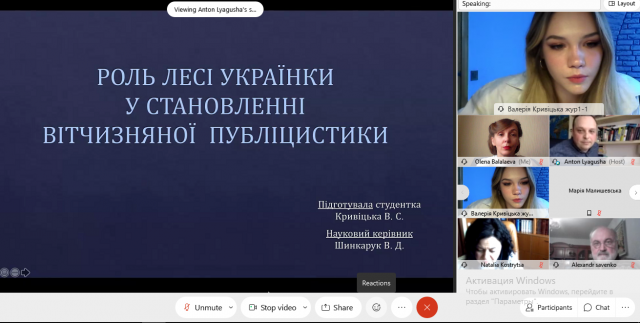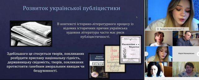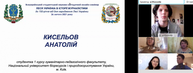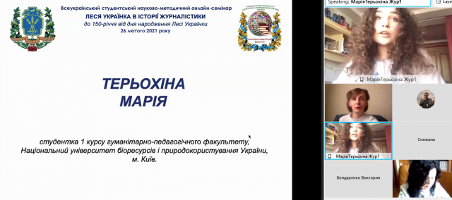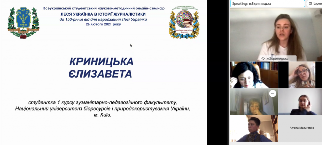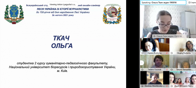 Ці та інші проблеми було розглянуто сьогодні на Всеукраїнському студентському науково-методичному онлайн-семінарі «ЛЕСЯ УКРАЇНКА В ІСТОРІЇ ЖУРНАЛІСТИКИ».