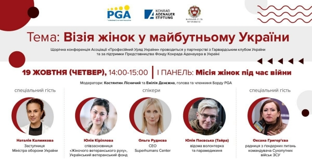 Дійство розпочалося із знайомства з спікерами першої панелі Жіночої лідерської конференції PGA, яка була присвячена викликам, що постають перед жінками під час війни, та цінностям, з якими українська та світова спільнота ці виклики долає.