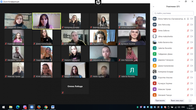 11 лютого відбулася он-лайн зустріч студентів 4 курсу 1 групи з наставником Нагорною Оленою Вікторівною. Зустріч було проведено за допомогою платформи Zoom.