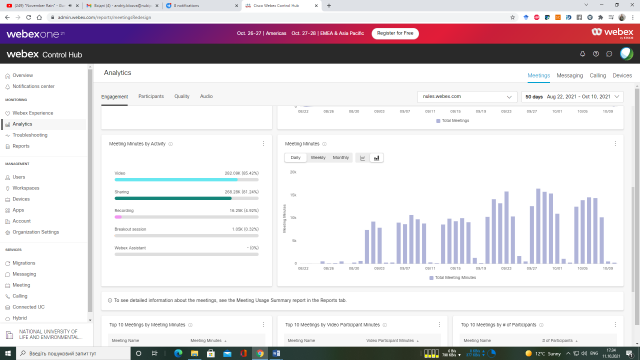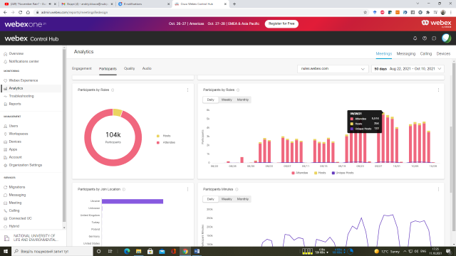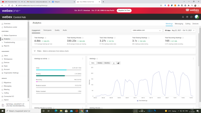 Необхідність використовувати у освітньому процесі відеоконференції для організації онлайн навчання дала поштовх підвищенню кваліфікації НПП з використання цифрових інструментів. Університет має два варіанти для організації онлайн навчання у межах корпоративних акаунтів. Один з них наданий компанією Cisco. Весь минулий навчальний рік була безкоштовна можливість користуватися ресурсом Webex. Даний продукт досить високого оцінили викладачі у роботі, що є не безпідставним. Саме Cisco Webex утримує лідерство у магічному квадранті Gartner вже який рік поспіль. Цього року університет придбав даний продукт на пільгових умовах для навчального процесу.