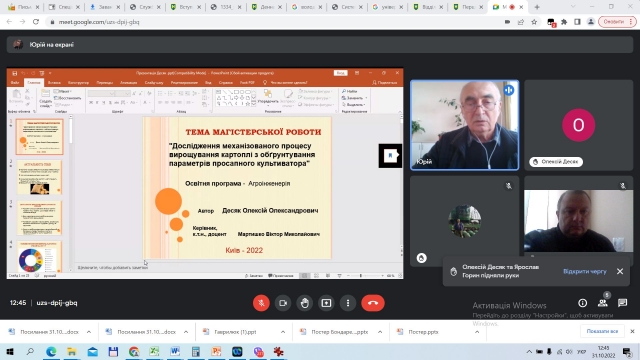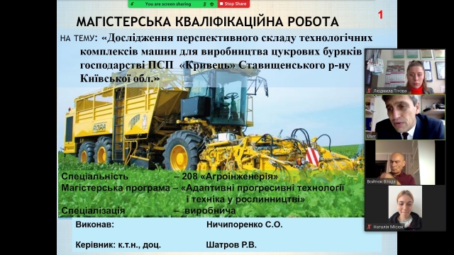 З 28 жовтня по 3 листопада 2022 року, на випускових кафедрах «Тракторів, автомобілів та біоенергоресурсів», «Охорони праці та біотехнічних систем у тваринництві», «Технічного сервісу та інженерного менеджменту ім. М.П. Момотенка», «Сільськогосподарських машин та системотехніки ім. академіка П.М. Василенка» та «Транспортних технологій і засобів у АПК» механіко-технологічного факультету, в дистанційному форматі, відбулися заслуховування наукових розробок 52 студентів магістратури, другого року навчання.