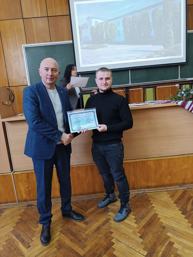 28 грудня 2023 року на механіко-технологічному факультеті відбулося вручення дипломів здобувачам освітнього ступеня «Магістр» спеціальності «Агроінженерія» денної та заочної форм навчання. Ваги цій події додав той факт, що у жовтні-грудні 2023 року на факультеті відбулася успішна акредитація освітніх програм підготовки магістрів спеціальності «Агроінженерія» Національним агентством із забезпечення якості вищої освіти України.