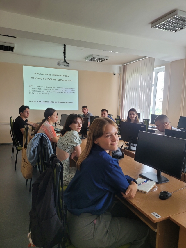 З дисципліни «Бухгалтерський облік в управління підприємствами» розпочали заняття магістри спеціальності «Облік та оподаткування», яку викладає кандидат економічних наук, доцент кафедри обліку та оподаткування Тамара Гуренко.