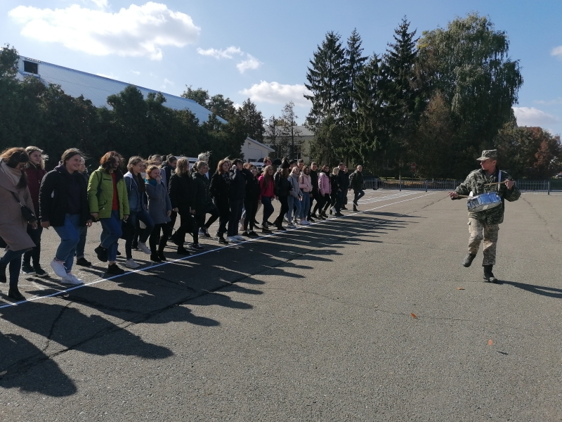 Молодим маркетологам цікаво усе, що відбувається в університеті, тому 8 жовтня 2019 року студенти першого та другого курсу ФАМ у супроводі наставників Карпенко Лариси Федорівни та Барилович Олени Михайлівни завітали на день відкритих дверей на кафедрі військової підготовки. Усі мали змогу зануритися в атмосферу кафедри, оскільки шикувалися і виконували накази командира як справжні курсанти.