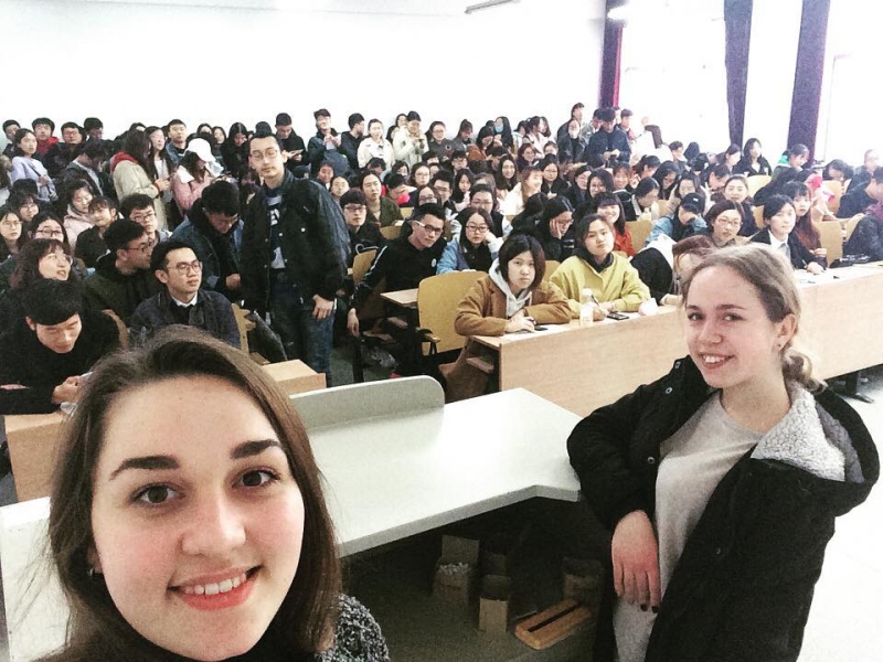 Ми проходимо стажування як викладачі англійської мови, працюємо з китайськими студентами. Наша головна задача – навчити студентів спілкуванню англійською мовою. Ми, як викладачі, прагнемо довести їм, що не варто боятися – головне почати говорити! Іноді виникають труднощі у вигляді мовного бар’єру, але китайські студенти дуже старанні, працьовиті, тому дуже швидко опановують нові слова. Вони завжди раді допомогти, як і, взагалі, всі жителі Китаю.