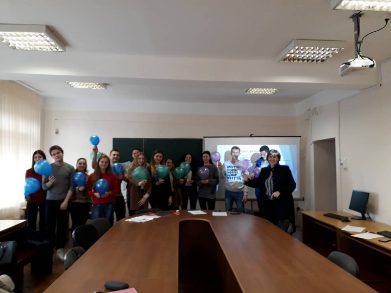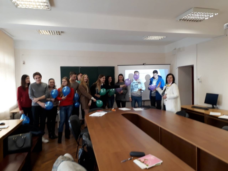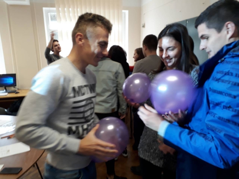 Тоді Лідія Василівна запропонувала, знову ж таки, скласти всі кульки біля дошки і розібрати їх по командам, але не штовхатись, передавати один одному його кульку. Тепер, у дружній взаємодії, студенти справились із поставленим завданням «на ура!». Таким чином, майбутні проектні менеджери зрозуміли, що завжди (і у професійній діяльності, і в повсякденному житті) потрібно вміти об’єднуватись, домовлятись і допомагати один одному.