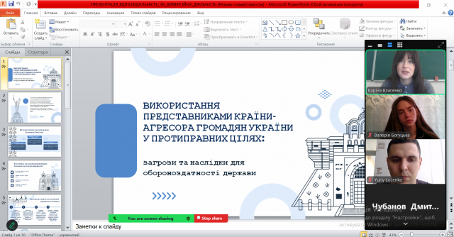 Обговорення основної теми виховної години полягало в тому, що громадян України незаконно використовують представники країни-агресора. Студенти дізналися про різні способи, якими ворог намагається дестабілізувати українське суспільство, включаючи вербування, інформаційні атаки та кіберзагрози.