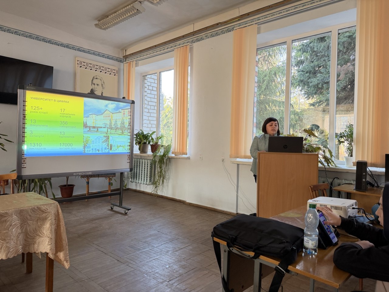 Доценти кафедри детально презентували структуру університету, розповівши про кожен факультет та кожну спеціальність. Студенти дізналися про умови вступу на базі диплома молодшого бакалавра, переваги навчання за скороченими програмами, сучасну матеріально-технічну базу.
