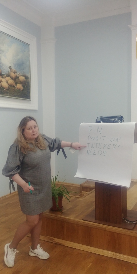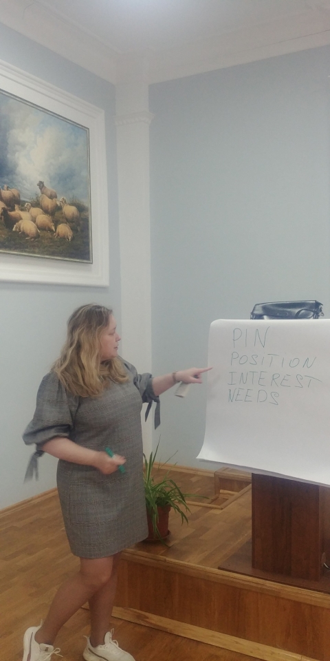 Учасники майстер-класу в процесі виконання симулятивних вправ та рольових ігор визначали позиції, інтереси, потреби сторін у міжнародних переговорах.