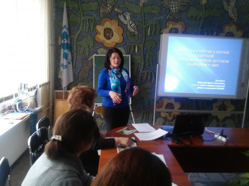 17.03.2016 р. доцент кафедри соціальної роботи та психології НУБіПУ Мартинюк Ірина Анатоліївна провела майстер-клас на тему «Психологічні механізми адаптації студентів до навчання у ВНЗ» для учасників тренінгу «Адаптація студентів-першокурсників», організованого Науково-методичним центром інформаційно-аналітичного забезпечення діяльності вищих навчальних закладів «Агроосвіта» під час Сьомої міжнародної виставки «Сучасні заклади освіти-2016».