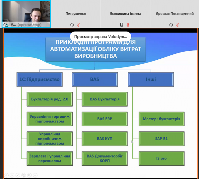 Під час лекції був розкритий теоретичний матеріал у взаємозв’язку із практикою господарювання сучасних підприємств та продемонстровані можливості використання програмного забезпечення для обліку витрат виробництва.