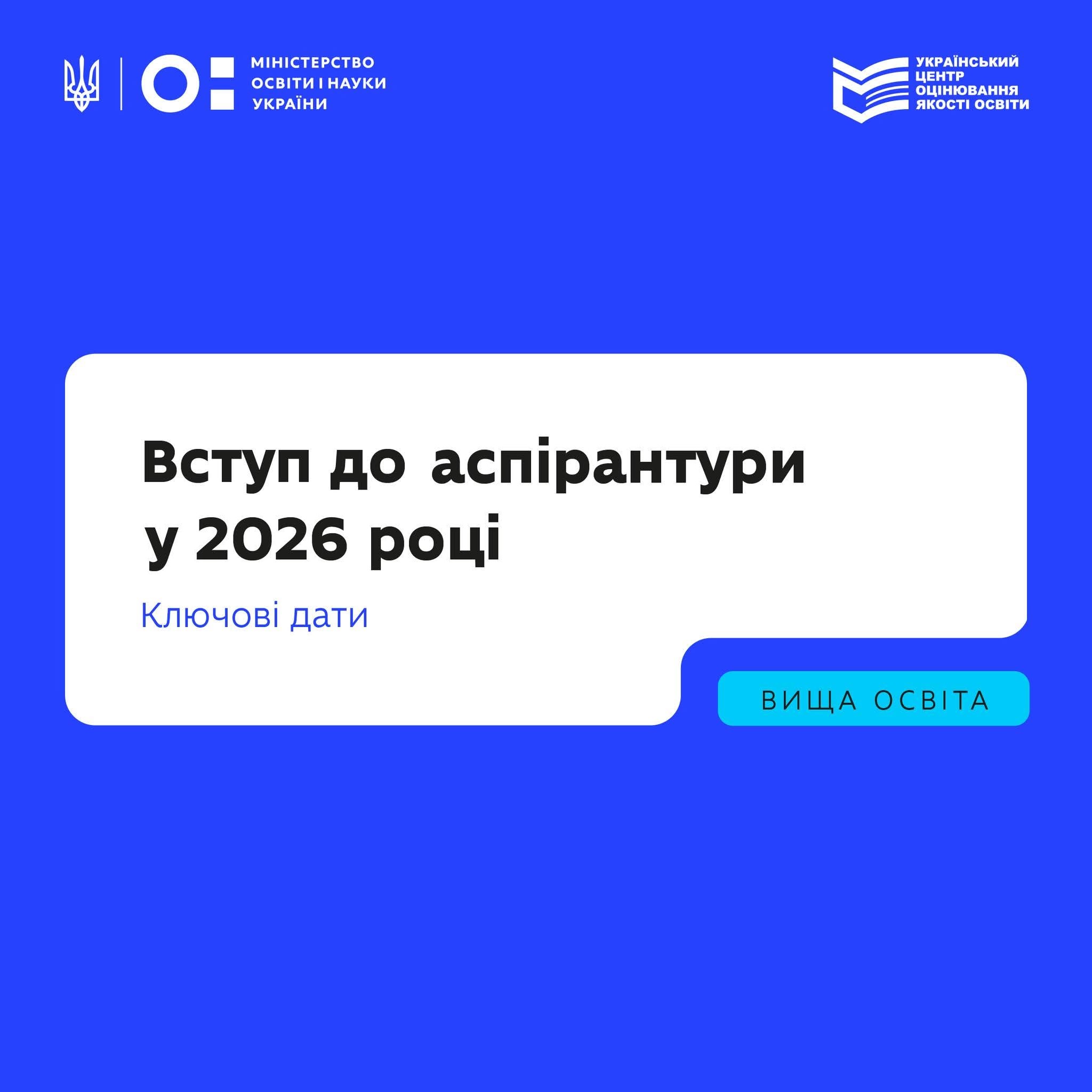 У 2026 році вступні випробування до аспірантури проходитимуть за технологіями зовнішнього незалежного оцінювання.