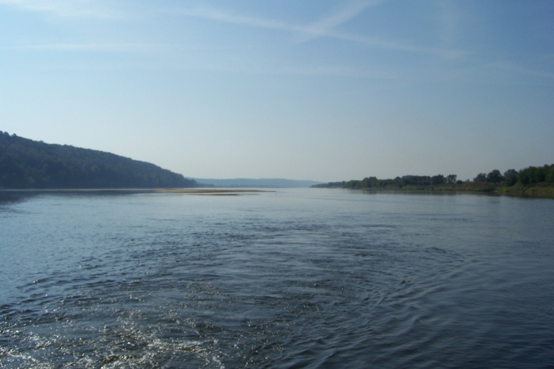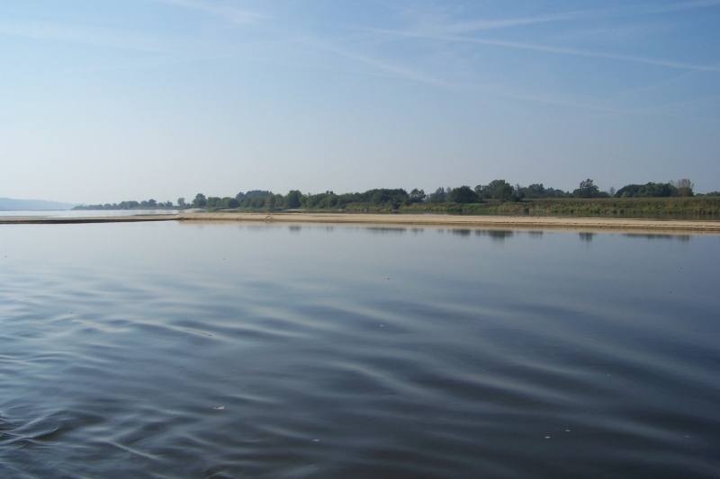 Ось така вона, річка Вісла, у нижній течії. На другому плані піщані острови - основна загроза для судноплавства. Що робити, щоб вони йому не заважали - саме це питання було головним під час польового етапу конференції.