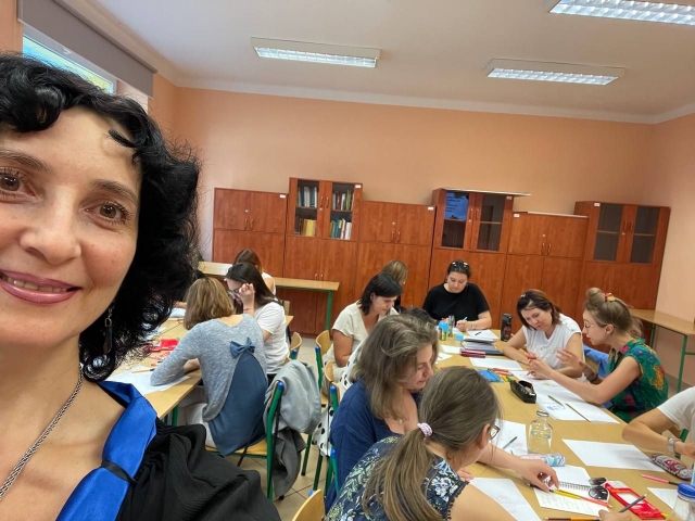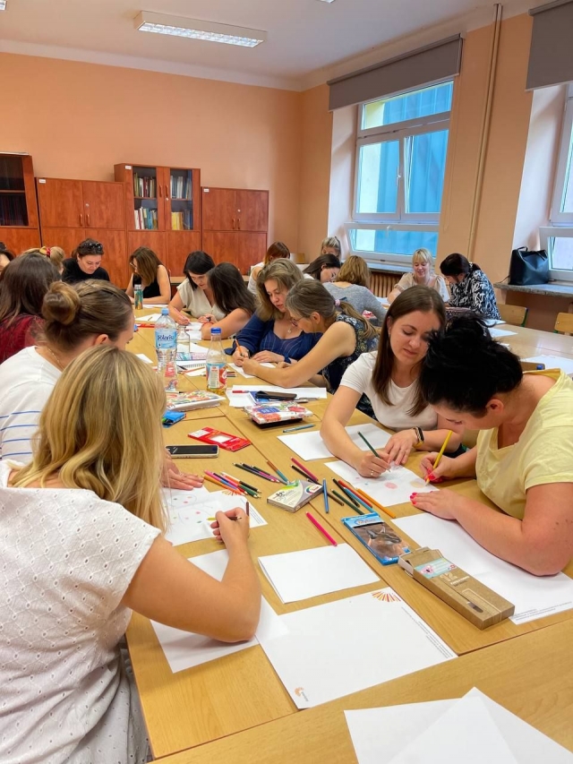 Конференція повністю відповідала окресленню «науково-практична», бо зробили паралельно секціям три авторських тренінги для польських учителів та українських учителів у Польщі, які навчають українських дітей: Катажина Станкєвіч («Мова – едукація – інтеграція. Діти біженців з України у польській школі»), Анна Млинарчук-Соколовська («Інновації педагогічні у процесі навчання польської мови як іноземної та інтеграції») та тренінг Осадченко Інни Іванівни від Гуманітарно-педагогічного факультету НУБіП України: «Елементи арт-терапії у процесі адаптації і соціалізації дітей, молоді та дорослих у контексті міграції, біженства і воєнних травм». Як завжди, учасники переконалися у супердієвості шоколадотерапії, а також авторських психотехнік «Весела казка про…», «Малюємо метелика», «Бажаю комусь», «Вібрації «Я і хтось»» тощо. Рівень захопленості вчителів підтвердив нагальну необхідність подальшого проведення таких тренінгів. Така праця зблизила душевно, духовно, професійно Інну Іванівну з Анною Млинарчук-Соколовською, з якою тепер плекають задум проєкту.