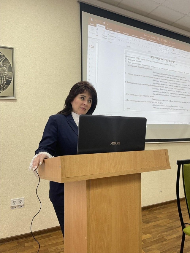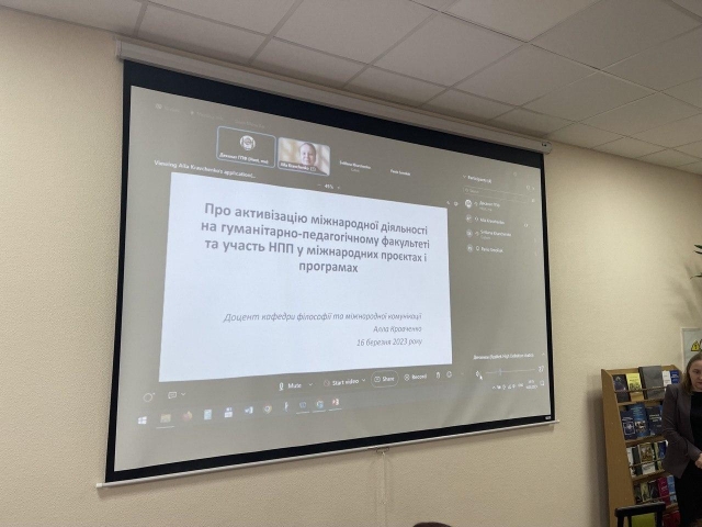 Стрижневим питанням ученої ради стало питання, присвячене активізації міжнародної діяльності на гуманітарно-педагогічному факультеті та участь НПП у міжнародних проєктах і програмах, основним доповідачем якого була заступник декана з міжнародної діяльності Алла Кравченко.