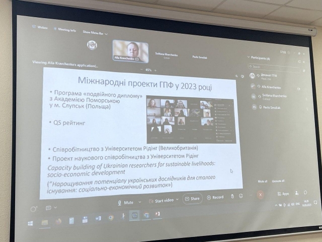 Аналізуючи здобутки й окреслюючи перспективні шляхи впотужнення міжнародної діяльності факультету, Алла Кравченко спрезентувала перелік (з покликаннями) фондів і грантів, де НПП факультету можуть конкурувати, а також надала інформацію про портали, де подають оголошення про конкурси, грантові можливості, тендери, стипендії, тощо від різних фондів і програм підтримки: від проектів USAID, EBRD, ПРООН, програм посольств в Україні, інших програм і фондів.