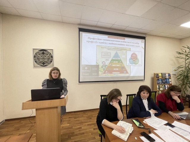 Наталія Шакун запропонувала використовувати для профорієнтаційної роботи в школі такі форми роботи, як профорієнтаційний урок, участь учнів у наукових гуртках на базі університету, інтерактивні виставки професій, хакатони, інтерактивні онлайн-тести та анкети для визначення індивідуальних особливостей та інтересів абітурієнта, онлайн-курси професійної орієнтації, ділова гра. У полі зору були й форми профорієнтаційної роботи з випускниками закладів фахової передвищої освіти, зокрема портфоліо навчальних проектів, година куратора, менторство. Універсальними, тобто такими, що можна застосовувати для роботи у школі, закладі фахової передвищої освіти, доповідачка назвала квест-гру, воркшопи, індивідуальні консультації, професійні дебати, роботу в соціальних мережах, роботу з сайтом, профорієнтаційні ігри, профорієнтаційний тренінг, опитувальники.