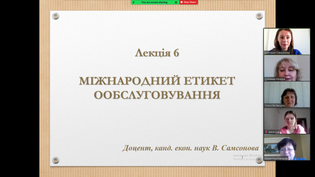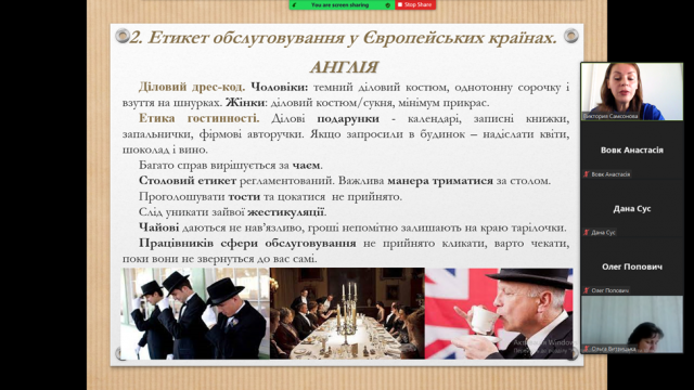Міжнародний етикет обслуговування: відкрита лекція доцента Самсонової В.В.