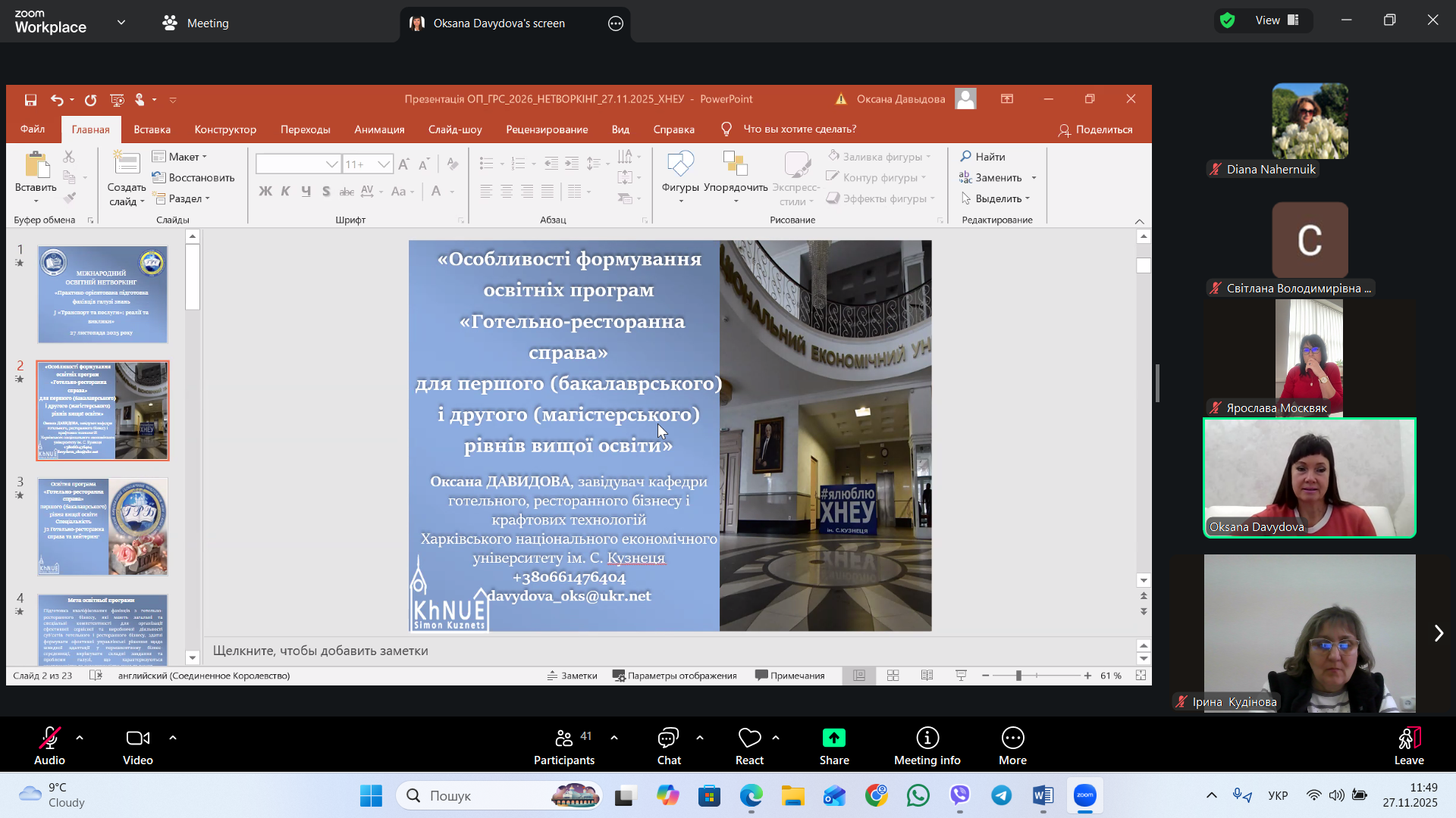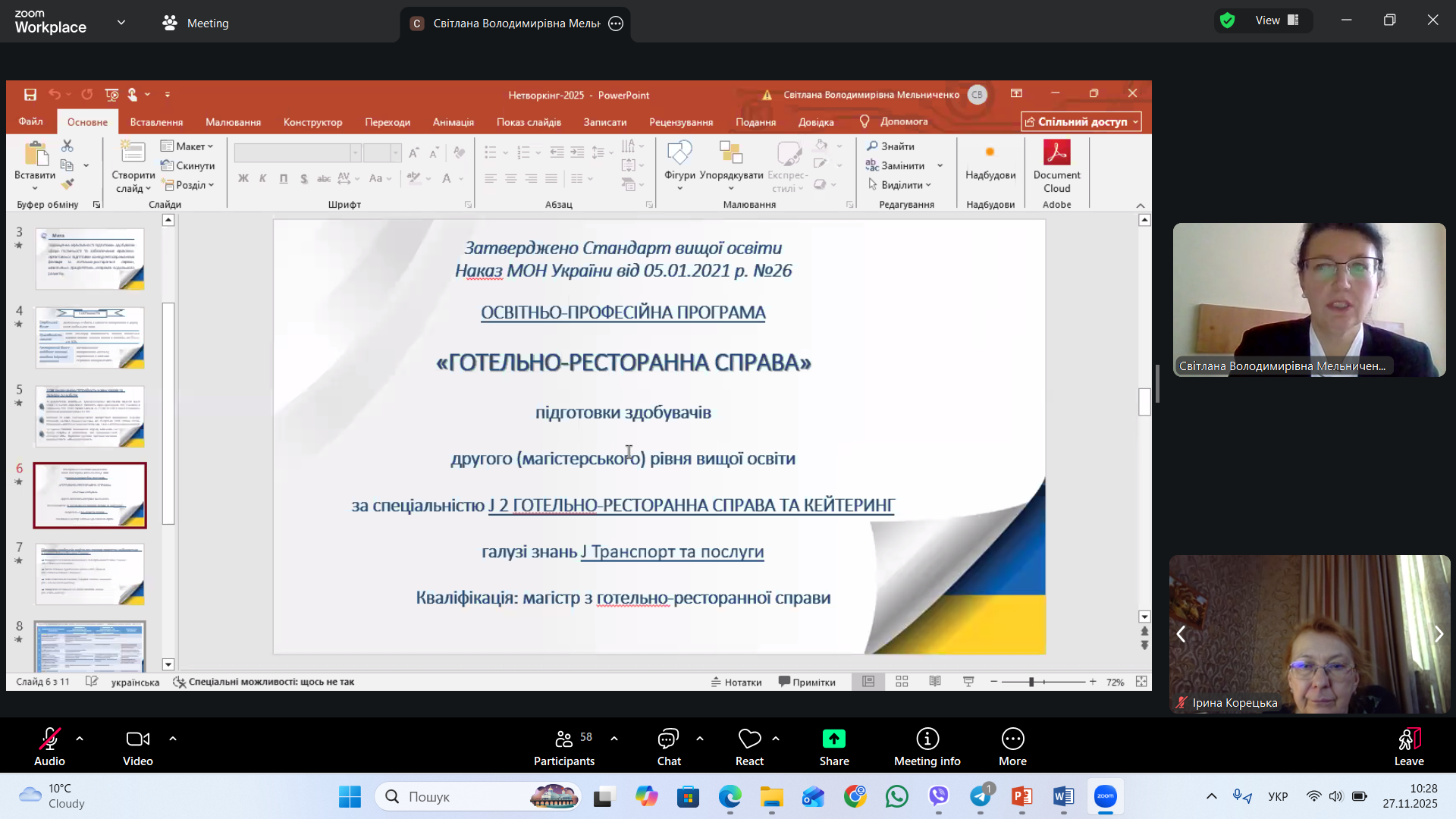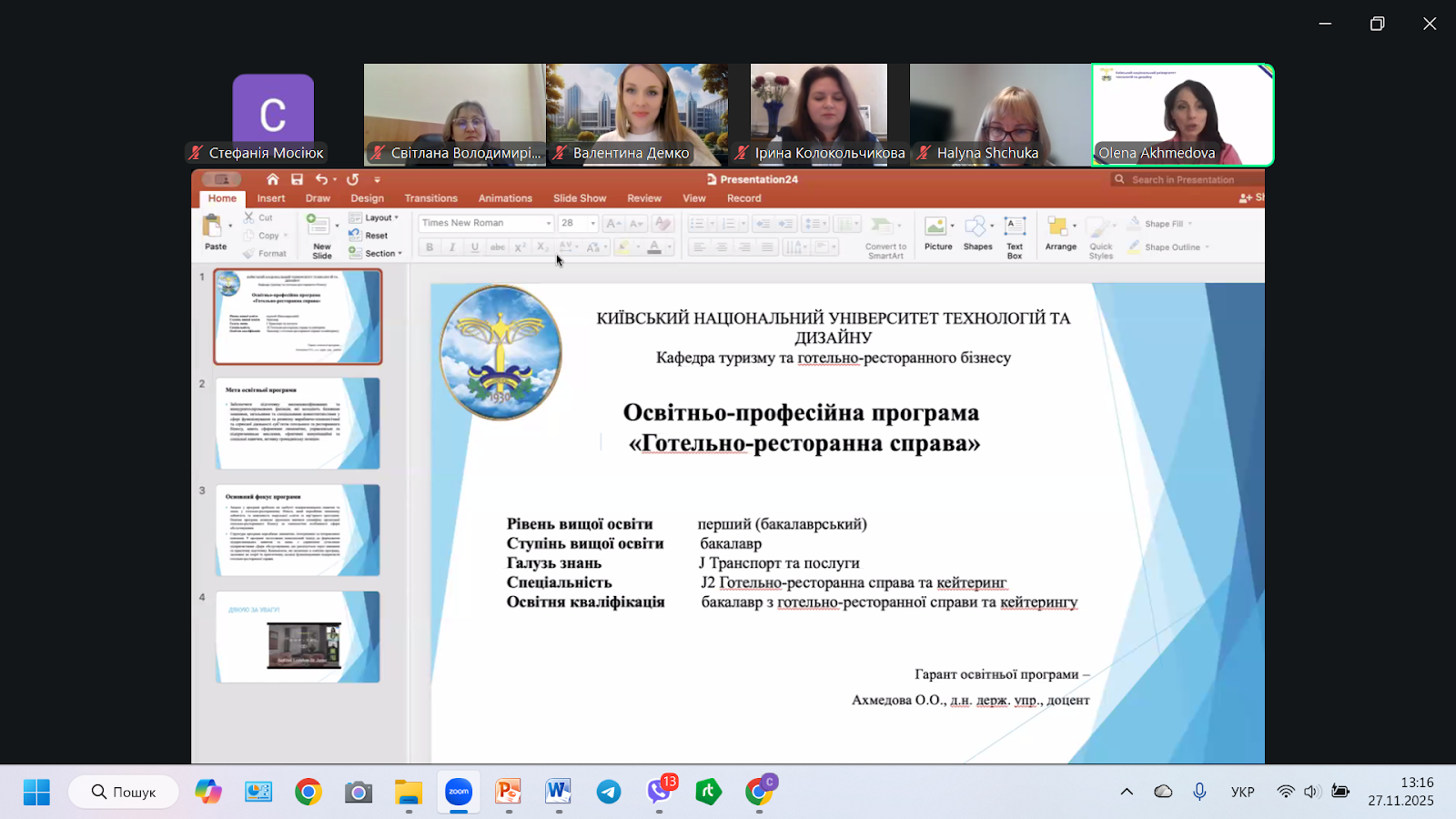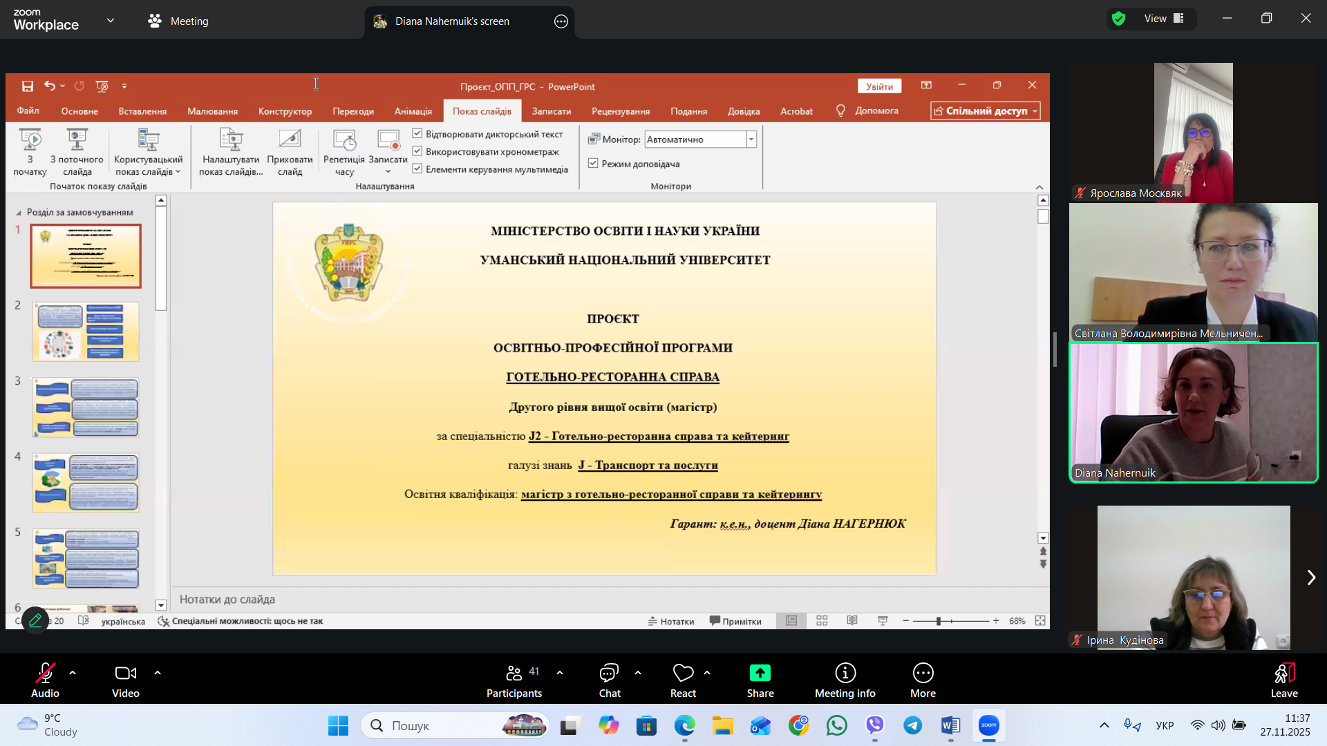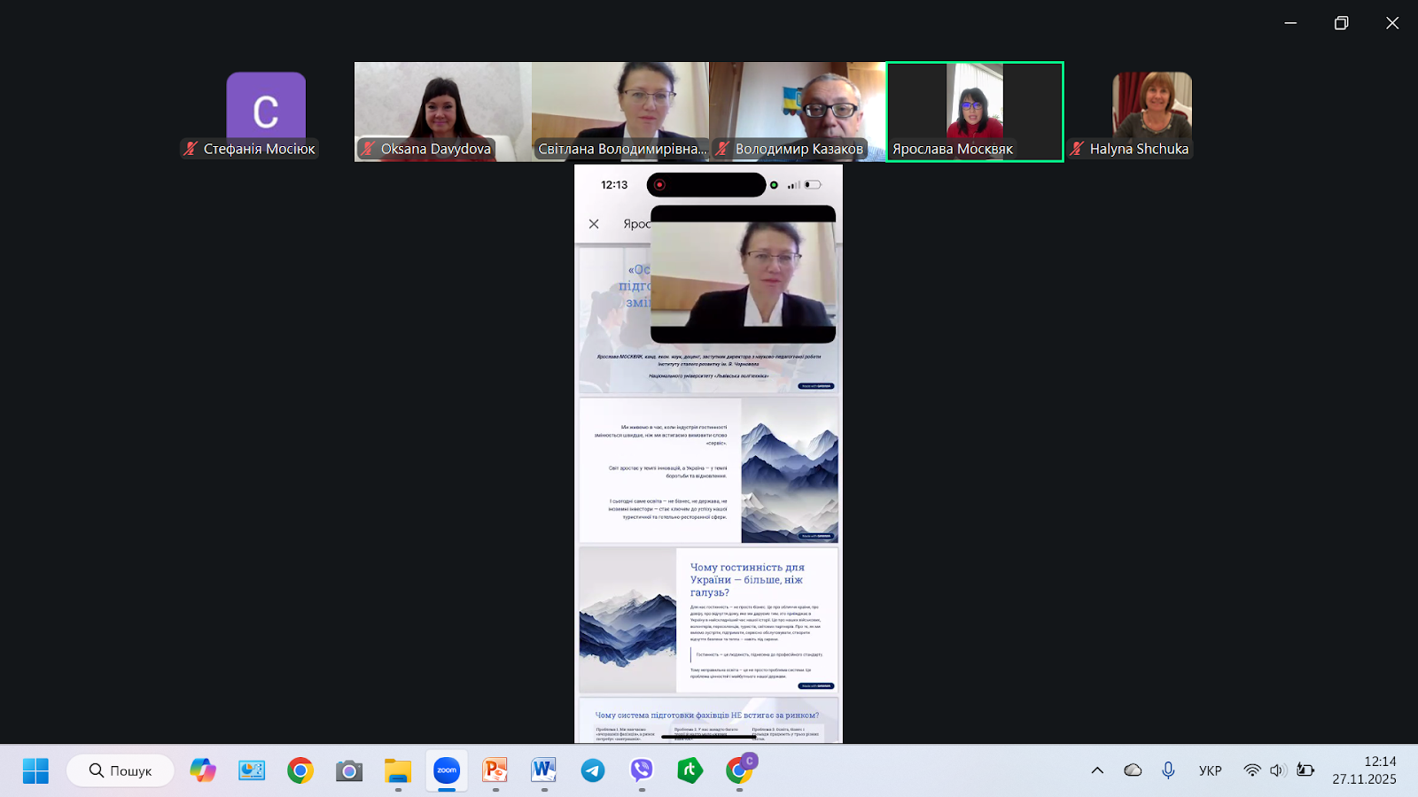 Діана НАГОРНЮК, завідувачка кафедри туризму та готельно-ресторанної справи презентувала проєкт освітньої програми «Готельно-ресторанна справа» освітнього ступеня магістр, яка реалізується в Уманському національному університеті.