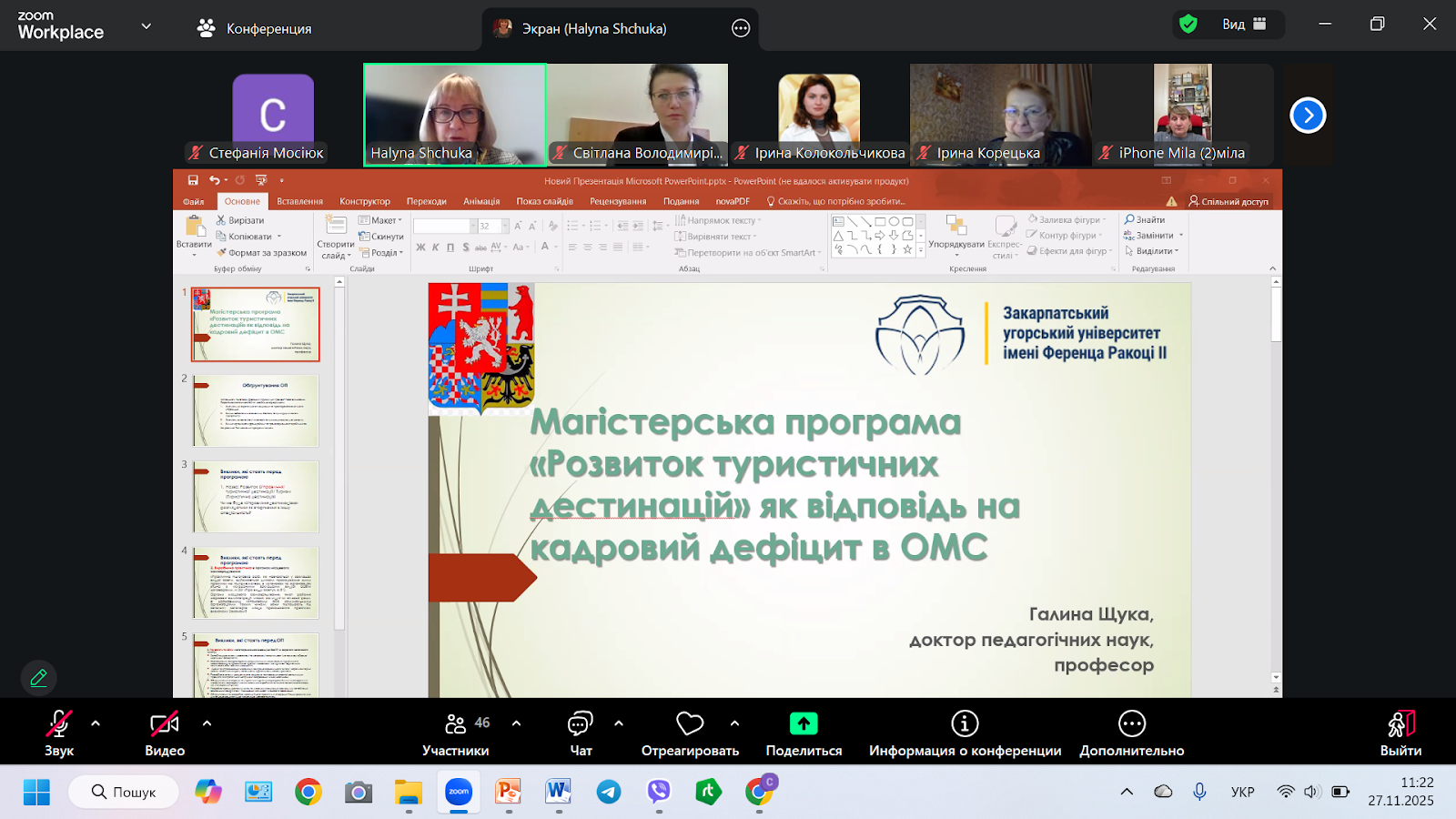 Галина ЩУКА, завідувачка кафедри географії та туризму Закарпатського угорського університету імені Ференца Ракоці ІІ надала інформацію щодо створення магістерської програми «Розвиток туристичних дестинацій», викликаної кадровим дефіцитом в органах місцевого самоврядування.