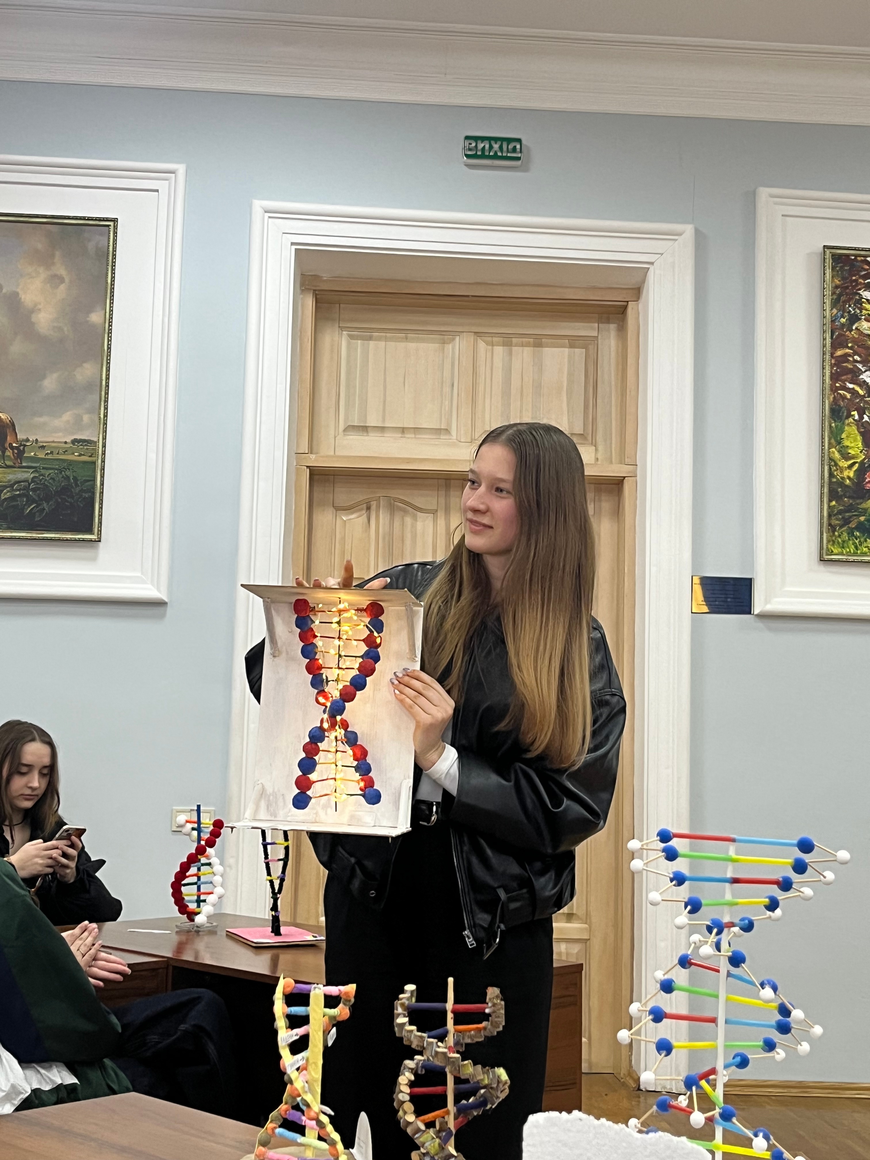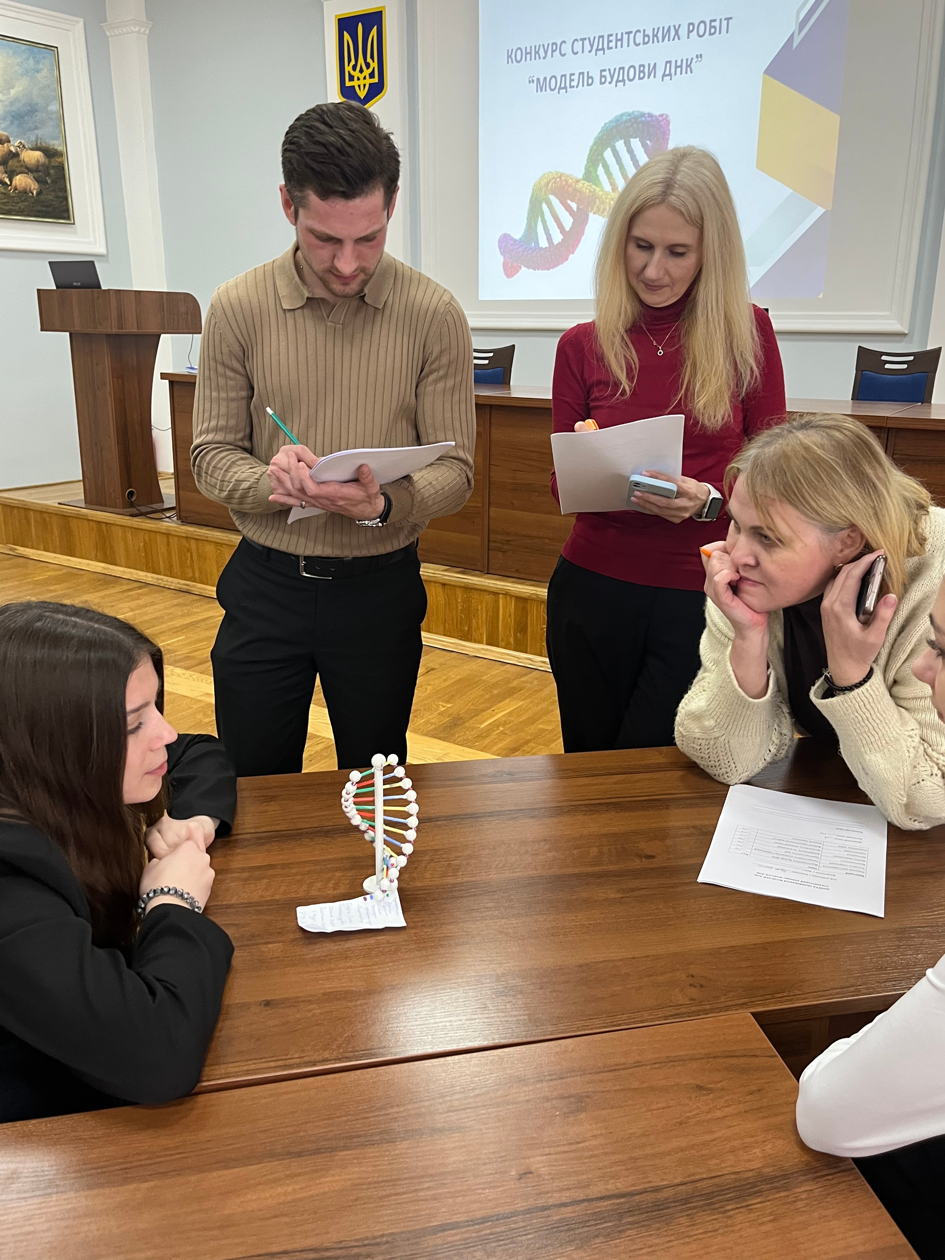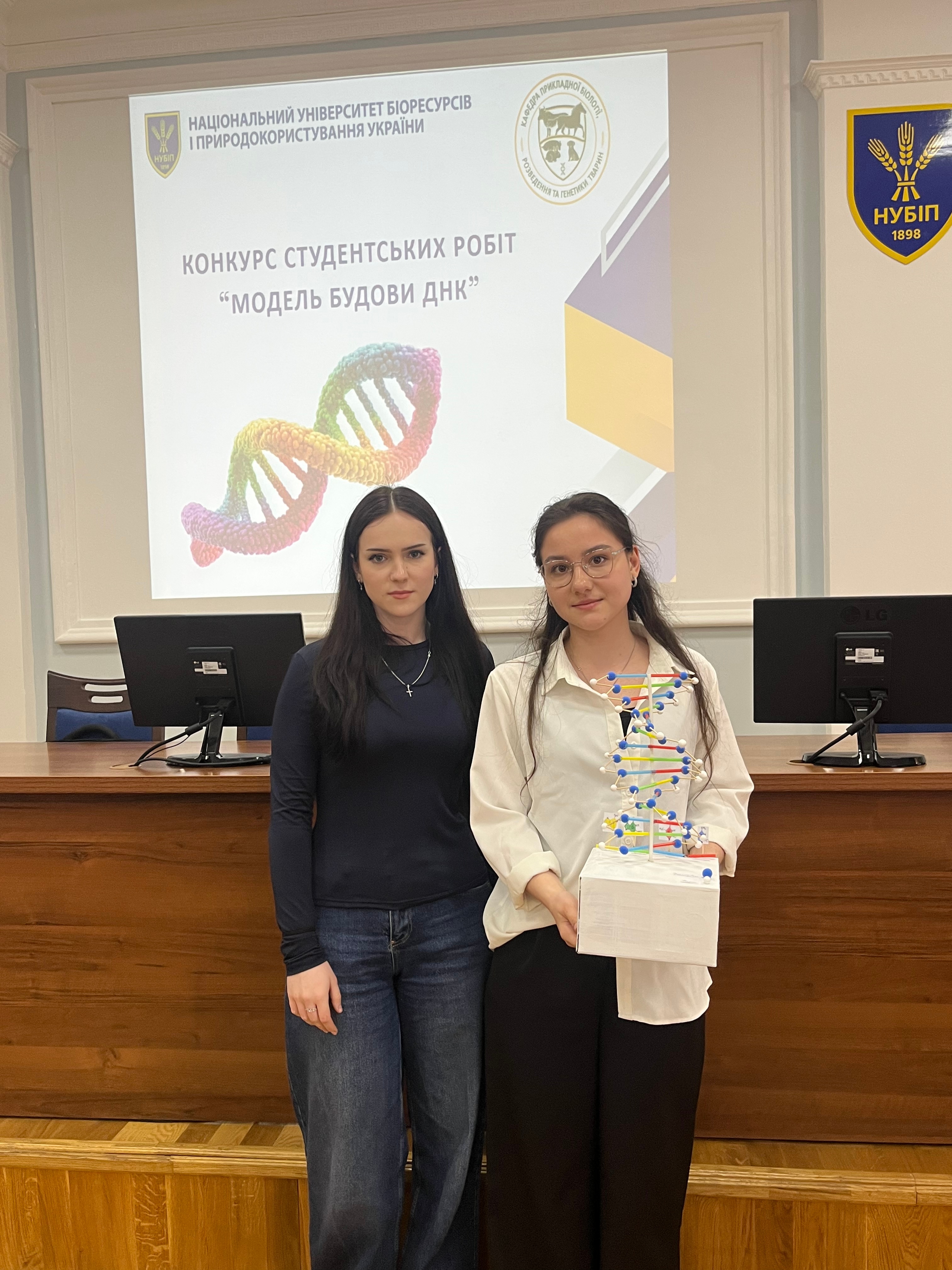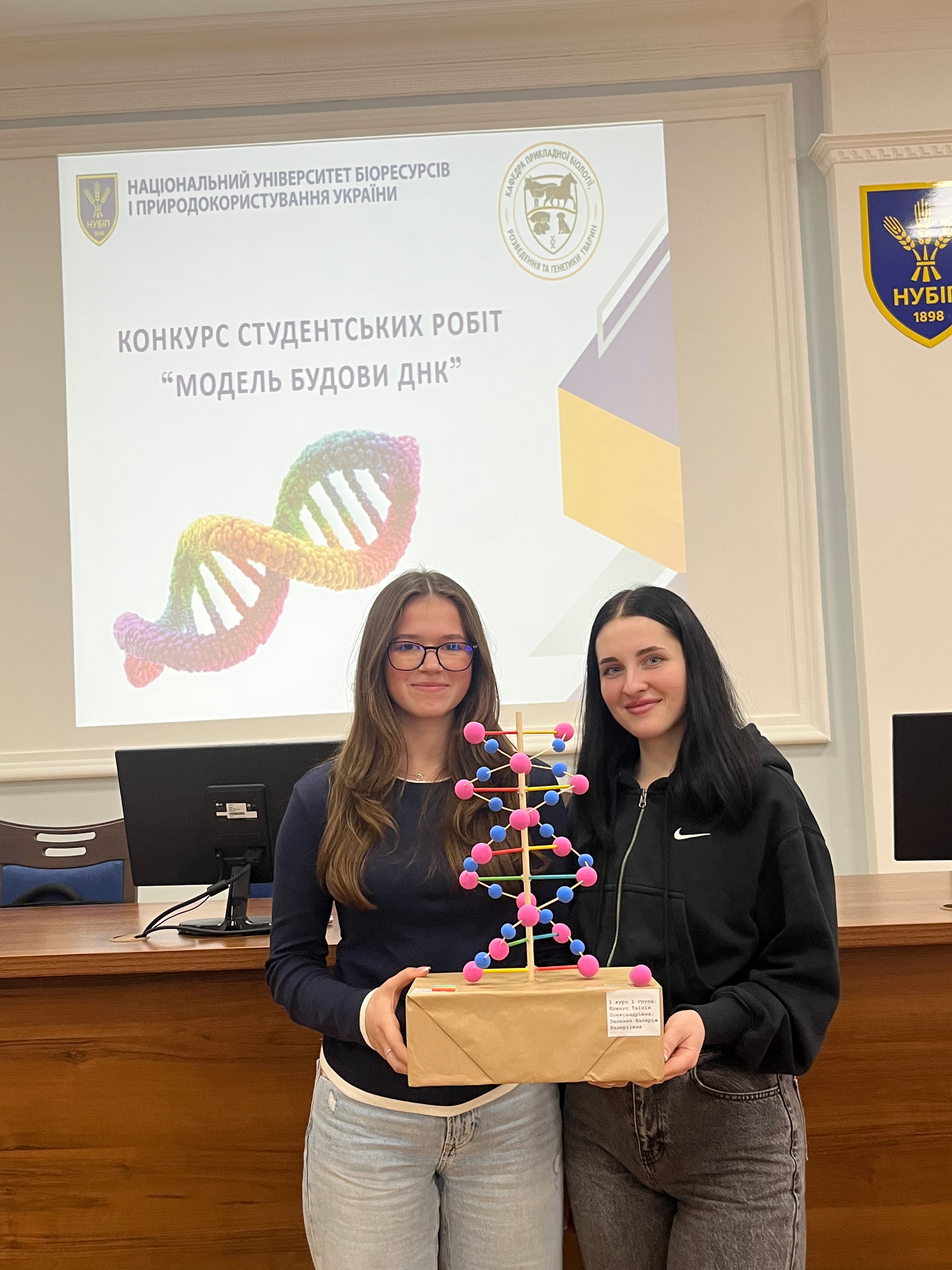 2 квітня 2026 року на кафедрі прикладної біології, розведення та генетики тварин відбулася визначна науково-освітня подія – конкурс студентських робіт «Модель будови ДНК». Захід був спрямований на стимулювання пізнавальної активності здобувачів вищої освіти, поглиблення розуміння структурно-функціональної організації генетичного матеріалу, розвиток навичок наукової візуалізації, комунікації та командної роботи.