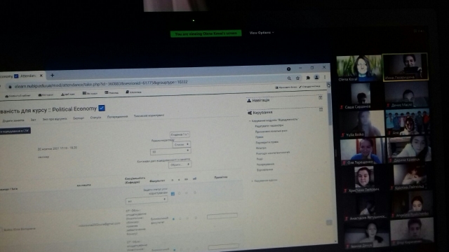 Гарант освітньої програми «Аналітичне і обліково-правове забезпечення бізнесу», завідувач кафедри статистики та економічного аналізу, д.е.н., професор Інна Лазаришина відвідала 20 жовтня 2021 року практичне заняття (6 пара) у он-лайн форматі з дисципліни «Політична економія» у 4 групи 1 курсу спеціальності 071 «Облік і оподаткування». Доцент кафедри економічної теорії Олена Миколаївна Коваль провела практичне заняття на тему «Production costs of goods and services. Profits» з використанням ресурсу e - learn. У цілому проведене заняття відповідає встановленим вимогам МОН України і забезпечує набуття студентами освітньої програми «Аналітичне і обліково-правове забезпечення бізнесу» необхідних загальних компетентностей і програмних результатів навчання.