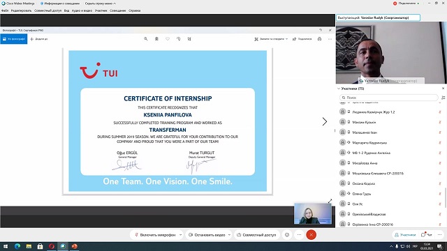 3 березня 2021 року відбулася презентація програми мовного стажування у Туреччині для здобувачів вищої освіти гуманітарно-педагогічного факультету. Така зустріч пройшла в змішаному форматі – очно-дистанційному. Представники Турецької республіки розповіли про особливості та умови шестимісячного стажування. Своїми враженнями поділися й наші здобувачі, які минулого року проходили стажування. Приємно чути їх захоплені розповіді і бажання продовжити дану практику в цьому році.