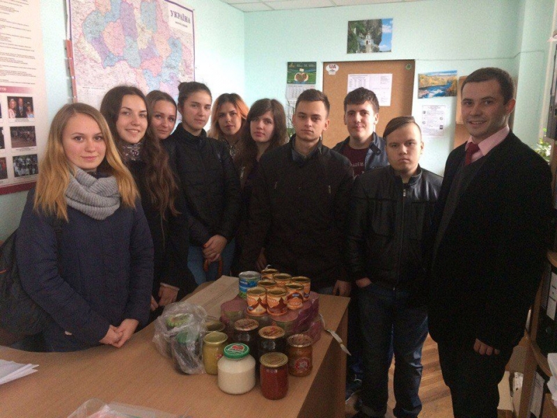 До Дня захисника України в Національному університеті біоресурсів і природокористування України було оголошено про проведення благодійної акції «Підтримай українську армію!». Студенти ветеринарного факультету продемонстрували, що вони є соціально активними громадянами України, які переймаються не тільки своїми проблемами, але і проблемами інших. У підтвердження тому є те, що студенти 5-ї групи 2-го курсу проявили ініціативу та долучились до університетської акції у зборі харчових продуктів, які будуть передані бійцям військової частини 2277 (12 батальйон), що знаходиться на передовій в зоні проведення АТО.