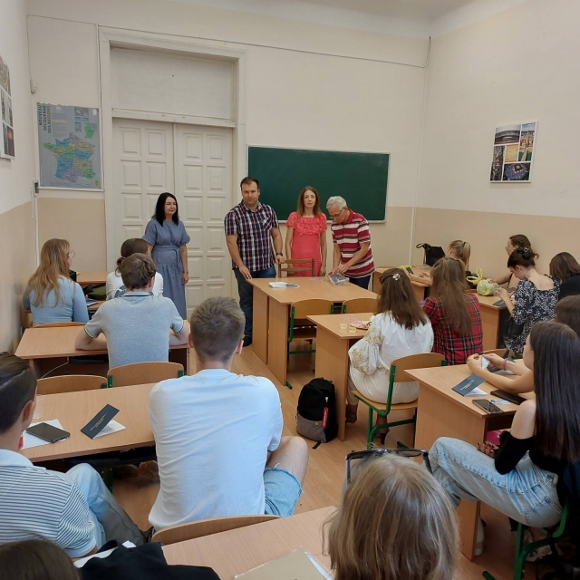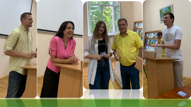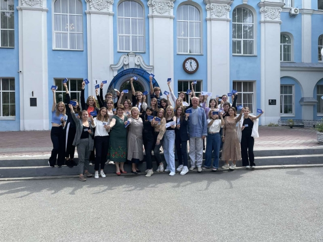 Заступники декана Наталія Шевченко і Богдан Назарова, завідувач кафедри іноземної філології Світлани Амеліної, доценти Олександр Артьомцева й Оксана Тепла, вручаючи атрибути офіційного статусу «студент» 58 майбутнім перекладачам, побажали студентам тільки відмінних оцінок у їхніх заліковках!