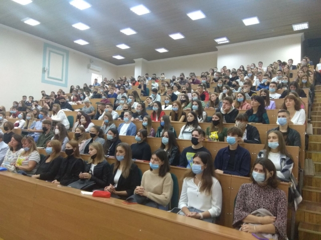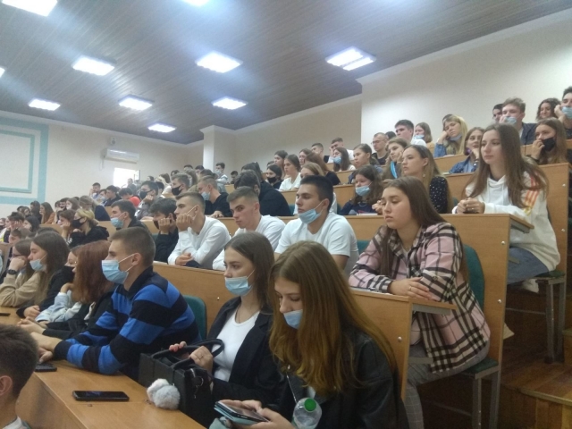 З вітальним словом та основних настанов звернувся до студентів декан економічного факультету Анатолій Діброва, який ознайомив з структурою факультету, закцентував увагу на термінах очного і онлайн навчання, організації освітнього процесу, підготовки до лекційних та практичних занять, на важливості дотримання карантинних обмежень.
