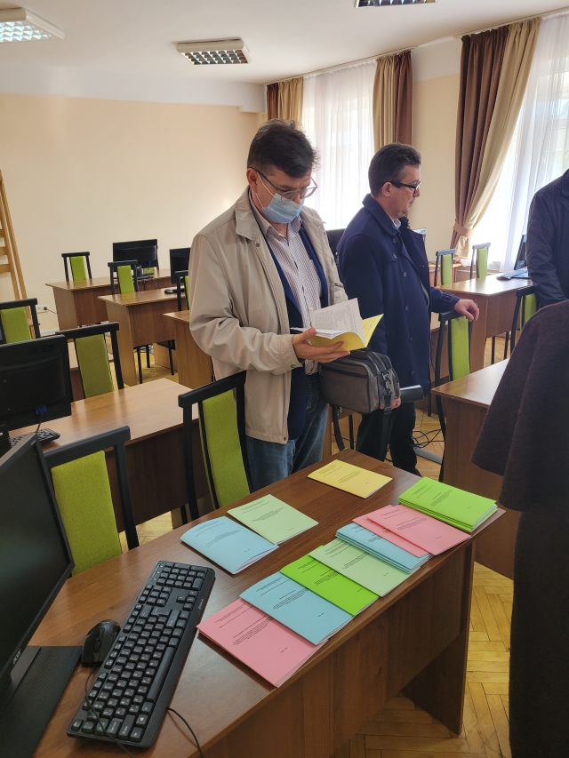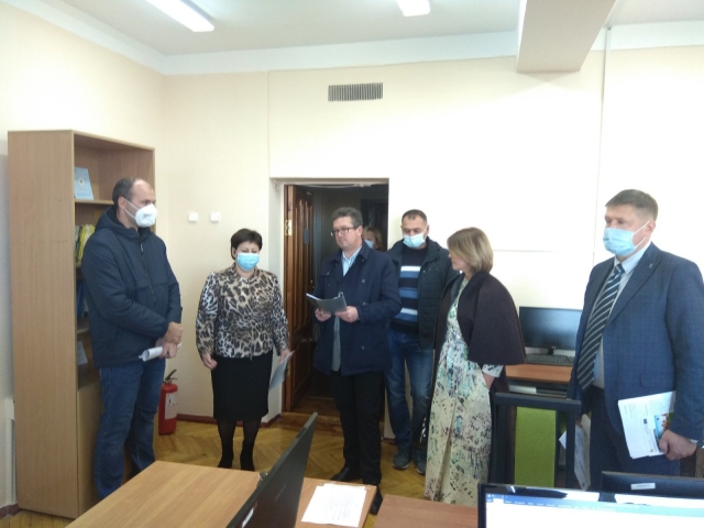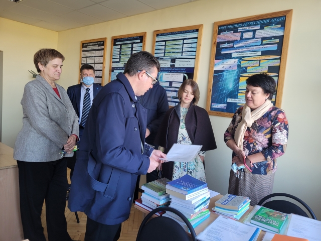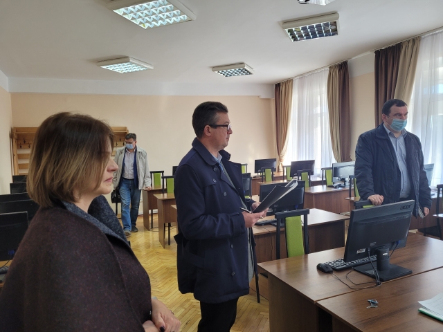 Завідувач навчально-наукової лабораторії Анастасія Яцун ознайомила членів комісії з пожежним станом лабораторії, продемонструвала роботу встановленої на комп'ютерах системи та показала додаткові матеріали для ознайомлення студентів з кафедрою та лабораторією.