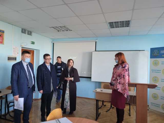 В 512 ауд. розміщено навчальну лабораторію з фінансів. Завідувач кафедри фінансів проф. Давиденко Н.М. представила матеріально – технічне забезпечення, озвучила програмні продукти, зокрема, програми IBM SPSS® Statistics, «Медок», Excel 2013, якими оснащена лабораторія.
