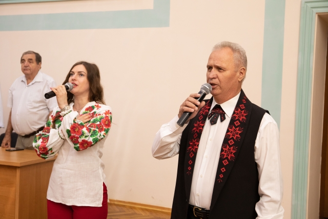 Урочисту атмосферу свята підтрималивикладачі кафедри культурології Владислава Чайка і Віктор Кавун, що виступили з музичним вітанням.