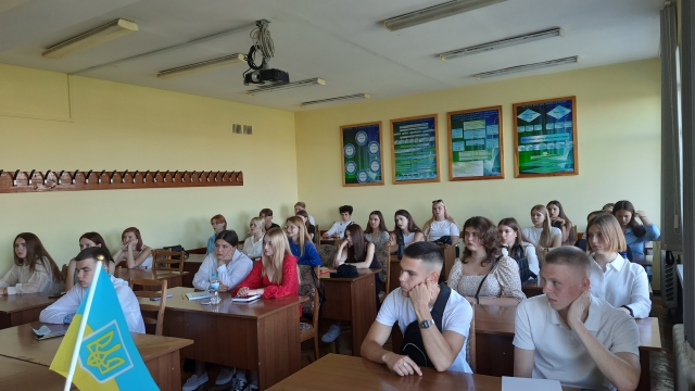 Після цього, студенти, разом зі своїм наставником доцентом кафедри обліку та оподаткування Світланою Деревянко та в.о. завідувача кафедри обліку та оподаткування Володимиром Литвиненко вирушили в аудиторію на свою першу виховну годину.
