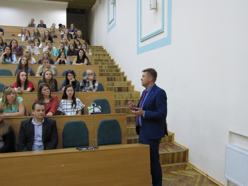 Потім про роботу студентської організації прозвітувала Катерина Дювенжи, яка в своїй презентації детально розповіла про студентське життя, перемоги та досягнення факультету.