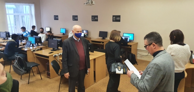 Зустрічали комісію заступники декана - Наталія Клименко та Андрій Блозва. Під час відвідування факультету, проректора та комісію ознайомили з матеріально-технічною базою навчальних лабораторій, в яких проводиться очне навчання студентів. А знайомитись є з чим, за останні 3 роки на факультеті було відкрито 5 нових лабораторії та 6 – оновлено. Компетентна комісія у складі Олега Бачинського, Наталії Зубок, Василя Тарасенко та інших, перевіряла матеріально-технічну базу, навчально-методичне забезпечення, нормативну документацію, дотримання санітарних та протипожежних норм та ведення відповідних журналів обліку. Атестація лабораторій відбувалась під час занять і в корпусі було вельми людно – студенти готуються до складання зимової сесії. Учасники перевірки спілкувались зі студентами, зауважуючи їх думки та побажання.