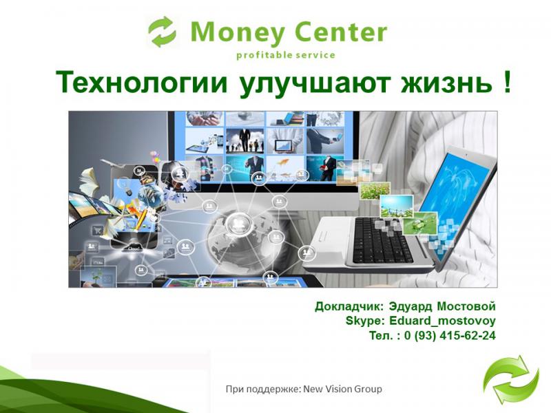 Представник фірми "Money Center" Едуард Мостовий для студентів ОС "Магістр" спеціальності "Економічна кібернетика" в рамках вивчення дисципліни "Електронна комерція" представив сучасний програмний продукт для обміну електроних грошей в Інтернет. Money Center, при підтримці New Vision Group, є інноваційним фінансовим інструментом, який призначений для використання, як приватними особами, так і Компаніями потребують даному продукті.