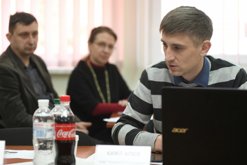 Директор товариства з обмеженою відповідальністю «Техноопттрейдинг» Каміл Алієв, розповів про технічне і програмне забезпечення для оцінки стану посівів за допомогою технології мультиспектральної зйомки компанії SLANTRANGE. Зокрема він акцентував увагу на методи збору та оброблення даних з використанням технології «розумної фільтрації» та створення карт «Стресу», «Вегетаційної маси» і «Потенційної врожайності».