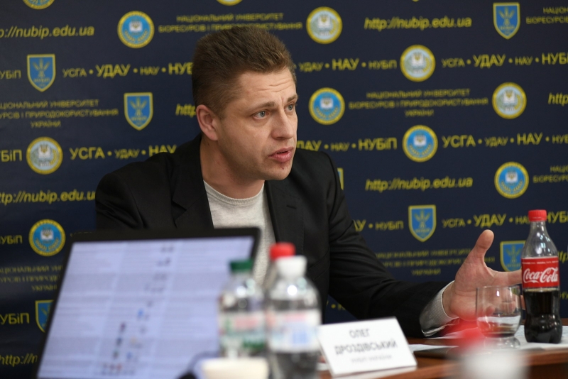 На початку зустрічі декан факультету землевпорядкування Тарас Євсюков привітав учасників круглого столу, побажав всім плідної роботи та гарної дискусії. Його доповнила завідувач кафедри геоінформатики і аерокосмічних досліджень Землі Світлана Кохан.