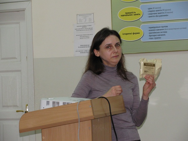 Не обминули учасники дискусії й тему патріотизму. З особливою увагою вони слухали розповідь гості – Пальчук Валентини Едуардівни, кандидата наук із соціальних комунікацій, наукового співробітника Національної бібліотеки імені В.І. Вернадського, координатора волонтерського руху Києва та Київської області. Валентина Едуардівна розповіла про надану підтримку учасникам АТО, зачитала щемливого листа бабусі, яка в’яже шкарпетки для українських солдатів, висловила подяку співробітникам факультету, а також студентам спеціальності «Управління навчальним закладом» за надану посильну допомогу бійцям 72-ї бригади. Життєва позиція цієї тендітної, однак сильної духом жінки, є яскравим прикладом активної громадянської позиції, гідної для наслідування.