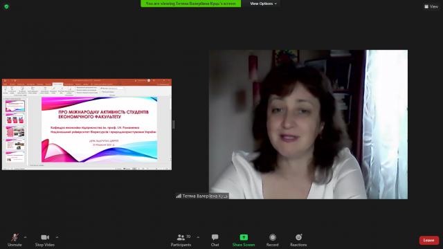 Надзвичайно цікаву і потрібну інформацію щодо міжнародної діяльності Університету та можливостей міжнародної активності студентів на економічному факультеті представила заступник декана з міжнародних питань Тетяна Куць.