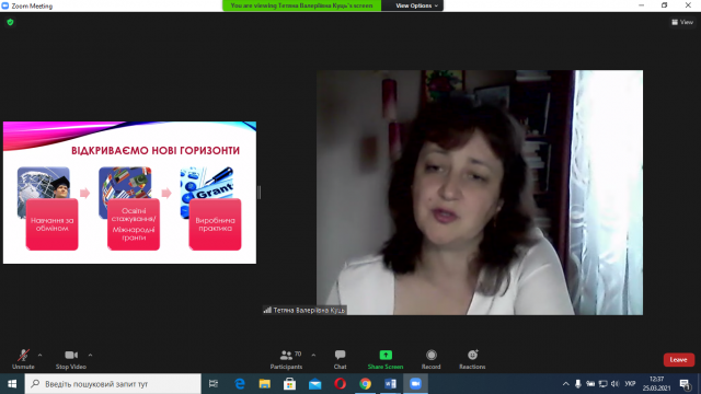 - розповіла про можливості навчання за обміном і освітніх стажувань, про можливості отримати міжнародні гранти та проходження виробничої практика за кордоном;