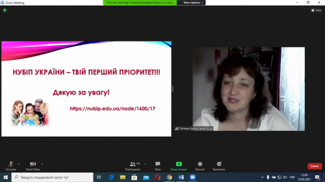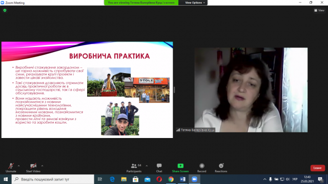 - відмітила, що навіть в умовах пандемії на економічному факультеті за сприяння декана А.Д. Діброви діє Програма подвійних дипломів, за якою студенти можуть отримати освіту в НУБіП України й паралельно в Словацькому аграрному університеті, м. Нітра.
