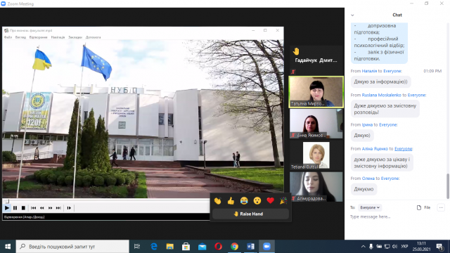 До переваг навчання в НУБіП України та на економічному факультеті, зокрема, які висвітлювалися на Дні відкритих дверей, також відноситься можливість навчання на військовій кафедрі. На жаль, її представники з об’єктивних причин не змогли завітати на День відкритих дверей, організований кафедрою економіки підприємства ім. проф. І.Н. Романенка, тому для гостей було продемонстровано відео-ролик із літніх польових навчальних зборів 2020 р. студентів-військових курсантів. Завідувачка кафедри Рогач Світлана наголосила, що військова кафедра НУБіП України однією з найбільш потужних серед закладів вищої освіти нашої держави.