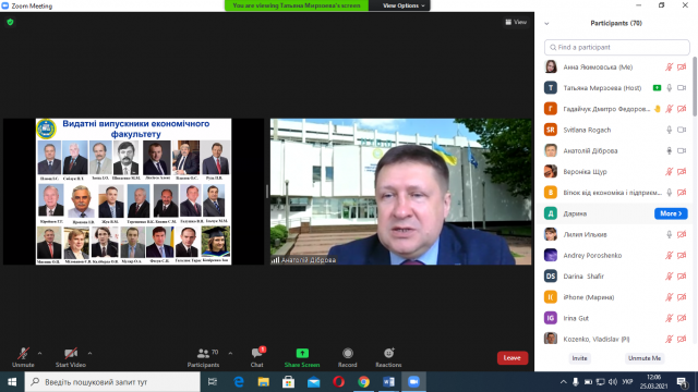 Спогадами про студентські роки із присутніми поділився Козенко Владислав − випускник економічного факультету 1992 р., к.е.н., керівник департаменту закупівель корпорації «PepsiCo Україна». Владислав Володимирович наголосив на тому, що сучасні випускники Університету мають великі можливості, перемагають у конкурсах й очолюють ключові посади в державних органах і бізнес-структурах.