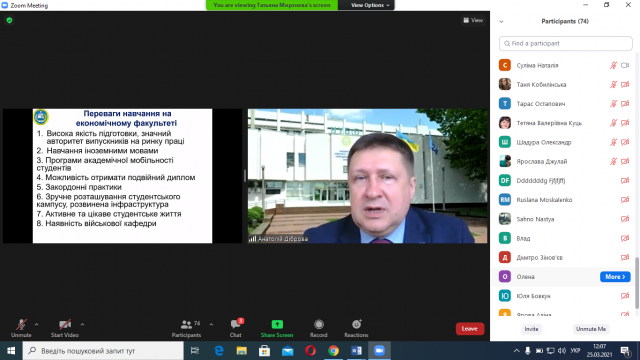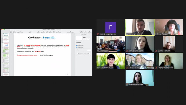 Учні, батьки та присутні на зустрічі вчителі шкіл і коледжів уважно прослухали інформацію, задавали запитання, отримали позитивне враження від змістовної, цікавої онлайн-зустрічі на кафедрі економіки підприємства ім. проф. І.Н. Романенка.