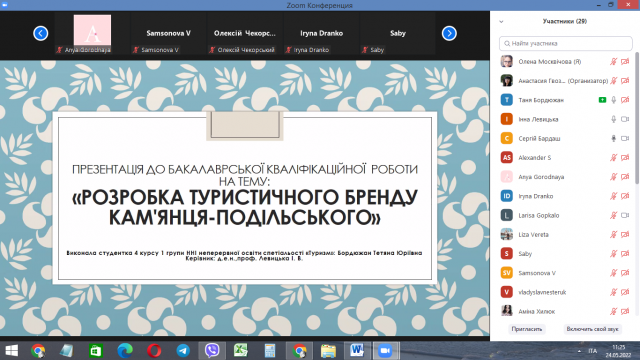 24 травня 2022 р. на кафедрі готельно-ресторанної справи та туризму ННІ неперервної освіти і туризму пройшов попередній захист бакалаврських кваліфікаційних робіт студентів спеціальності 242 «Туризм».